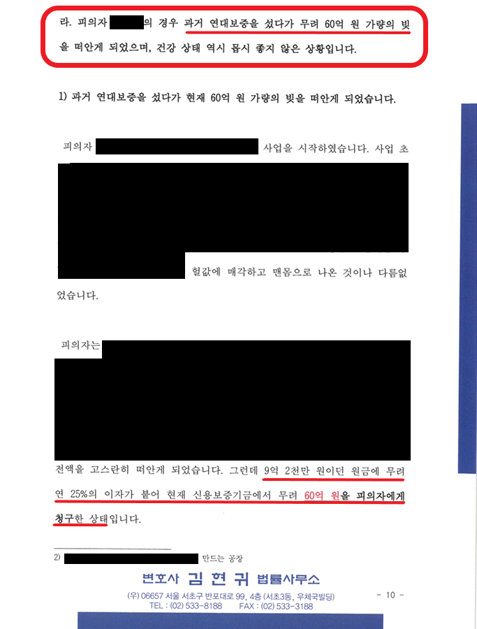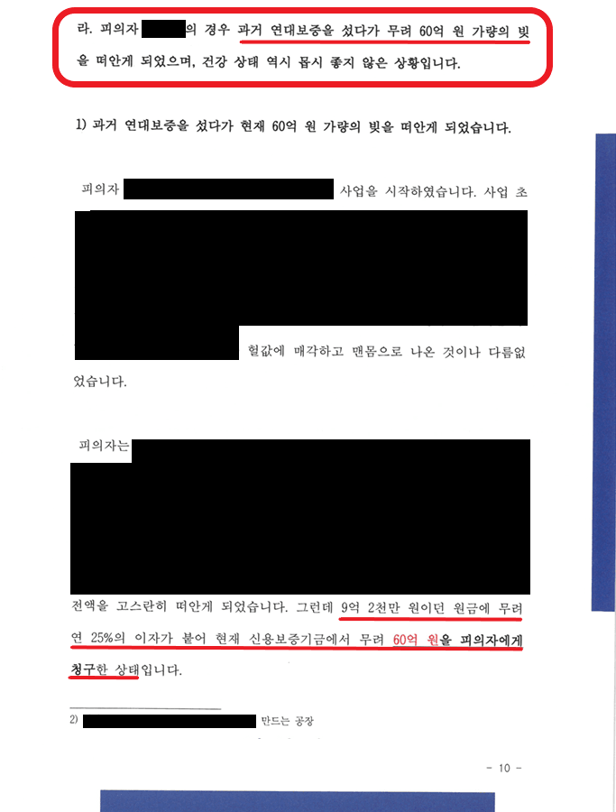 2) A의 경우 과거 연대보증을 섰다가 현재 무려 60억 원 가량의 빚을 떠안게 되었으며, 건강 상태 역시 몹시 좋지 않은 상황임