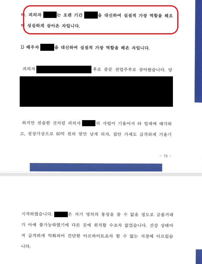 3) B는 신용불량자이자 중증환자인 A를 대신하여 실질적 가장 역할을 해오며 성실하게 살아온 자임