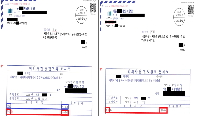 결국 10번의 절도 + 피의 금액만 무려 100만 원 가량인 상황 + 아예 합의하지 못하였음에도, 검사는 변호인의견서를 내용을 꼼꼼히 읽어본 후, A와 B 모두를 기소유예 처분 하였습니다. 그리고 A가 혼자한 단순 절도에 대하여도 모조리 기소유예 처분하였습니다.