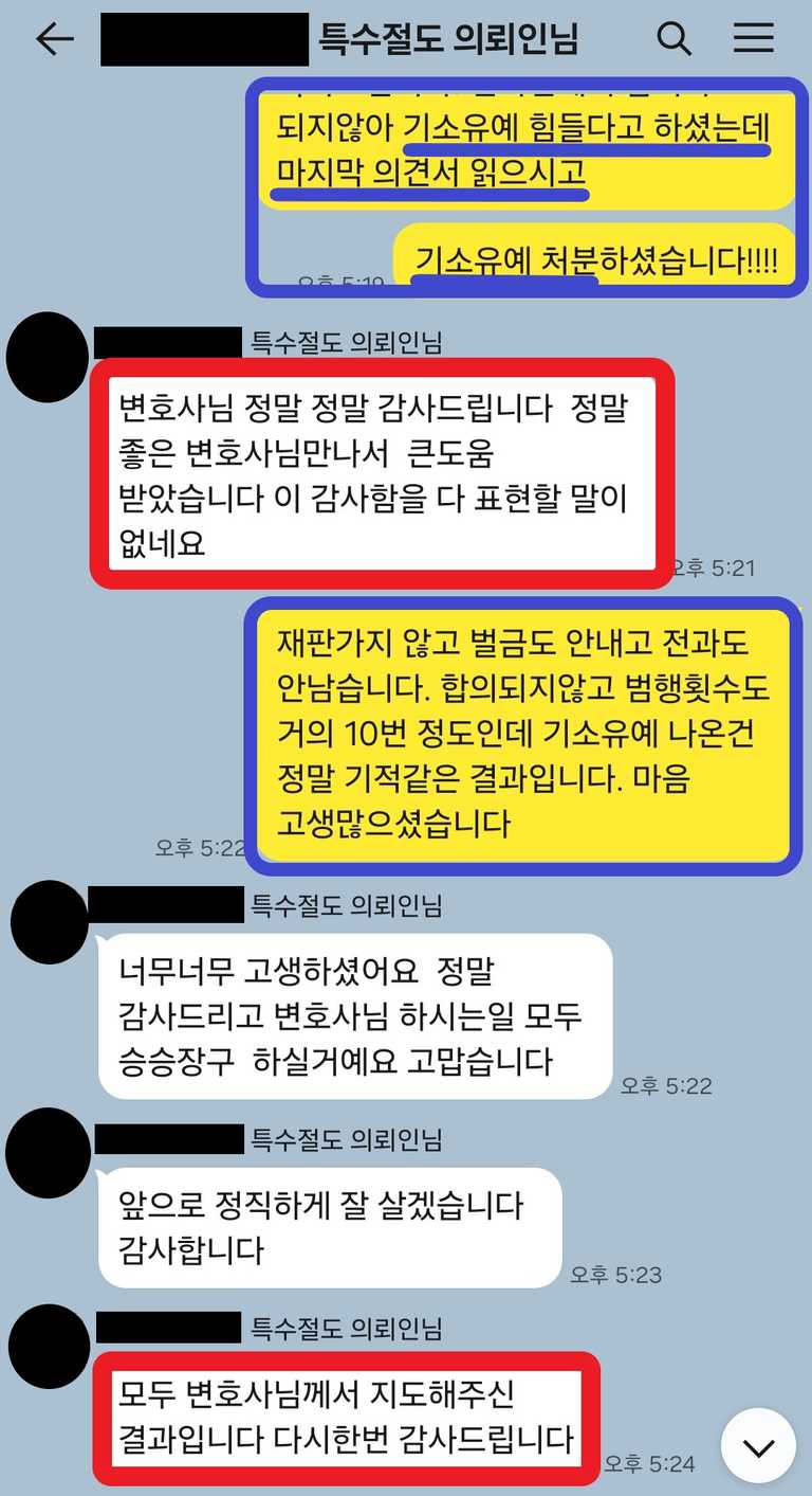검사은 직접 저에게 전화하셔서 "아무리 사정이 안타까워도 특수 절도이기에 합의되지 않으면 기소유예는 힘들다. 그러니 처분 전에 합의를 해보라"라고 말하셨습니다. 저는 합의하지 못한 이유를 상세히 설명드리고, 2차 의견서를 제출하였습니다.