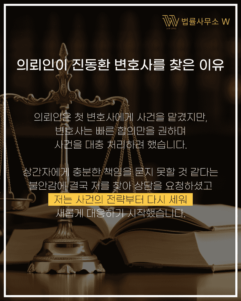 안녕하세요, 법률사무소 W 대표변호사 진동환입니다.