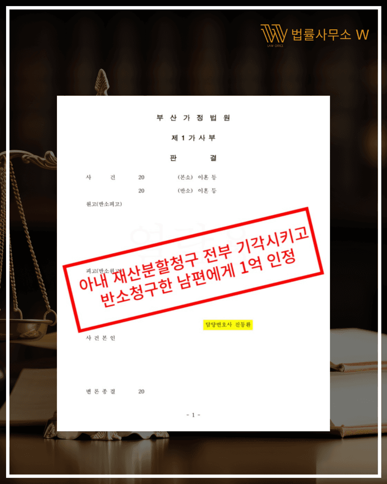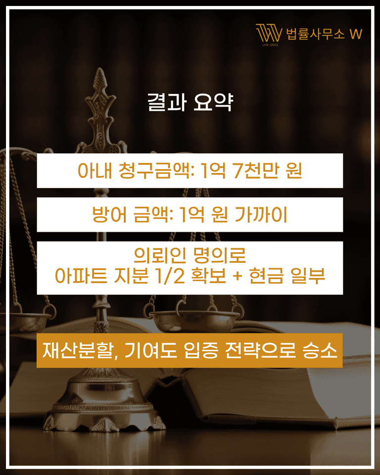 의뢰인은 오히려 1억 원 상당의 재산을 인정받았습니다.