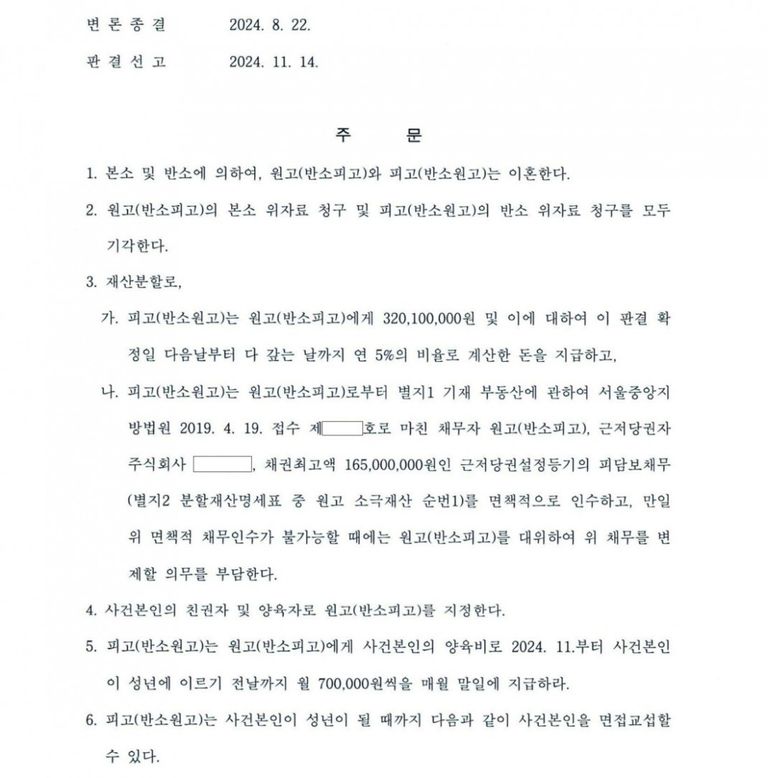 이혼소송을 제기하여 자녀의 양육권, 친권을 얻었고, 혼인기간이 짧고 부부재산형성에 대한 초기 기여가 적었으나 재산유지의 기여도를 인정받음