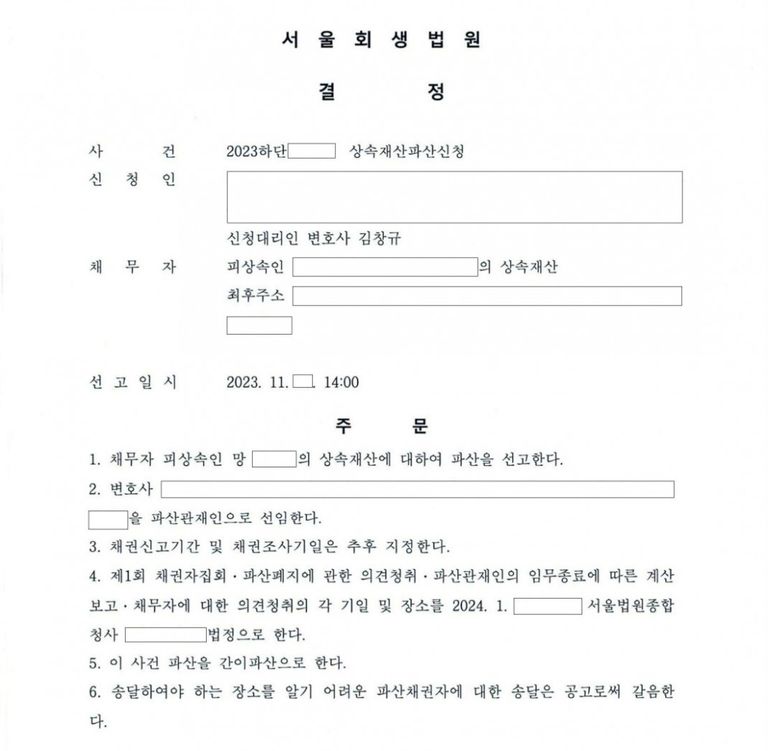 상속채권자를 대리하여 피상속인의 상속재산에 대하여 파산신청을 하여 인용됨