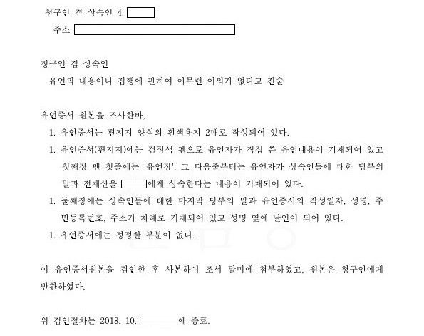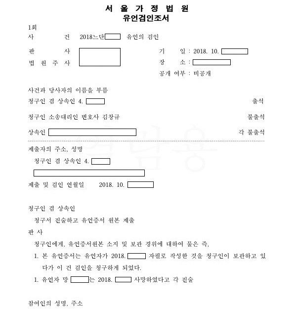 자필증서에 의한 유언장에 대하여 유언검인