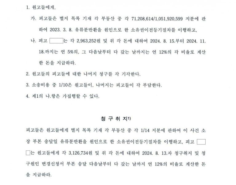 상대방의 특별수익 주장을 모두 반박하여 유류분반환청구 인용