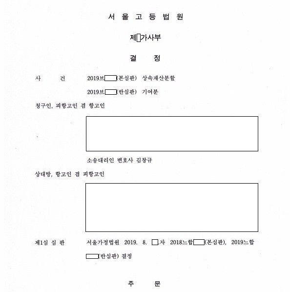 상속재산분할사건의 항고심에서 상대방이 기여분을 주장하였으나 기각됨