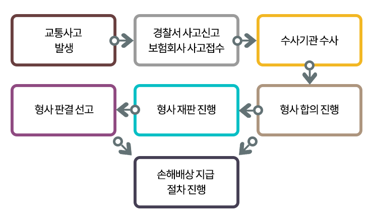 한순간의 실수나 방심으로 교통사고를 일으켜 ‘내가 왜 그랬을까’하는 자책에 빠져 극도의 스트레스와 불안을 호소하시는 분들이 많습니다. 해당 사건으로 인한 스트레스와 불안을 줄이기 위하여서는, 해당 사안으로 인한 민형사상 책임의 범위에 대하여 명확히 이해함과 동시에, 향후의 절차에 대한 정확한 이해가 선행되어야 합니다.