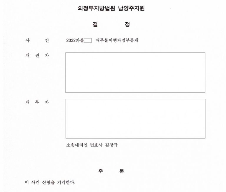 채권자의 채무불이행자명부등재신청에 대하여 방어하여 기각결정됨