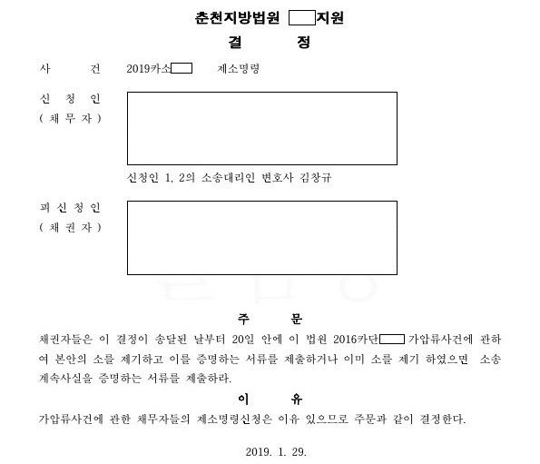 수년 전 가압류 결정이 내려졌음에도 본안 소송을 제기하지 않고 있어 제소명령신청을 하여 제소명령결정
