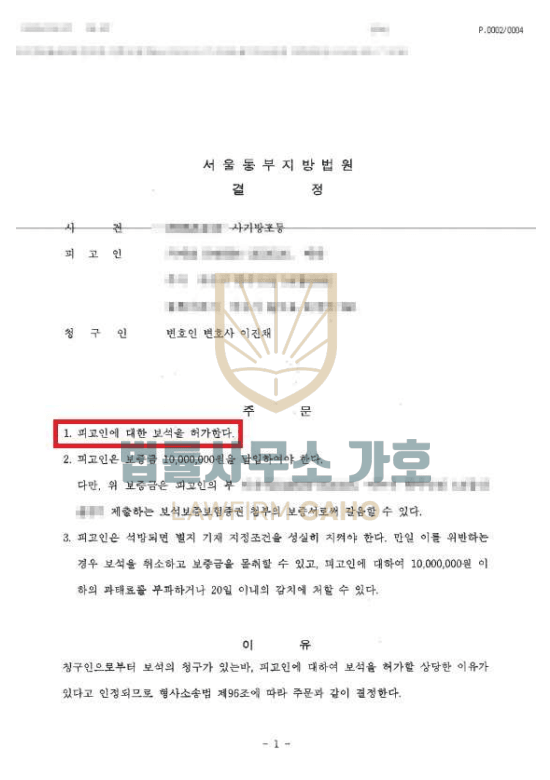 보이스피싱 가담 액수가 너무 많고 다른 조직원과의 접촉 등의 우려도 있어 보석청구를 하여도 인용될 가능성이 너무도 낮은 상황이었는데, 포기하지 않고 끝까지 양형사유 및 정상참작사유를 제출하고 가담 액수를 줄이는데 성공하여 결국 1심 재판 진행중 보석결정이라는 엄청난 결과를 맞이한 사건이었습니다.