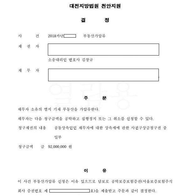 상속인 중 일부가 상속세를 납부하지 않아 연대납부의무가 발생한 상속인이 향후 상속세를 납부하게 될 경우 미납상속인에 대한 구상권이 발생하는데 이를 피보전권리로 하여 상속세미납 상속인 소유의 부동산 가압류