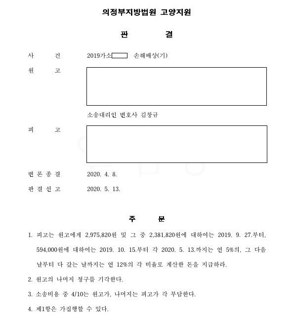셀프주유소 직원이 경유차량에 휘발유를 주유하여 주유소를 상대로 손해배상청구하여 2,975,820원 인용