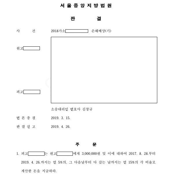 상대방이 상해를 이유로 위자료 2,000만원을 청구하는 손해배상청구소송을 제기하였는데, 300만원으로 감액하는 내용으로 판결