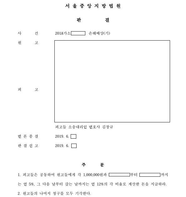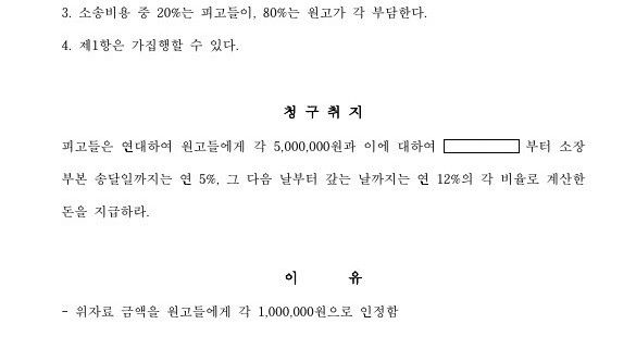 상대방이 무단 사진 게시를 이유로 위자료 1,000만원을 청구하는 손해배상청구소송을 제기하였는데, 200만원으로 감액하는 내용으로 판결