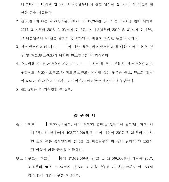 상대방이 설계상 하자를 이유로 1억 273만원을 청구하는 손해배상청구소송을 제기하였는데 4,109만원으로 감액하였고, 설계용역비 1,700만원을 반소로 청구하여 전부인용