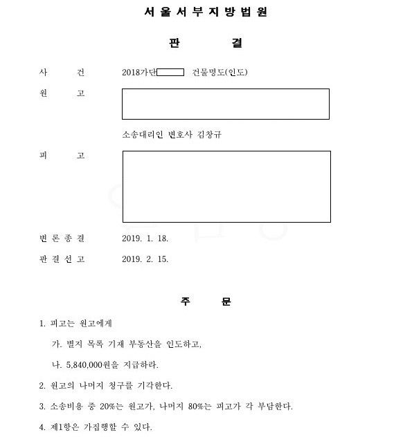 경매로 부동산을 취득하였음에도 유치권을 주장하면서 불법점유하는 자가 있어 이를 상대로 부동산인도(명도) 및 불법점유기간 동안 임대료 상당의 부당이득반환청구를 하여 승소