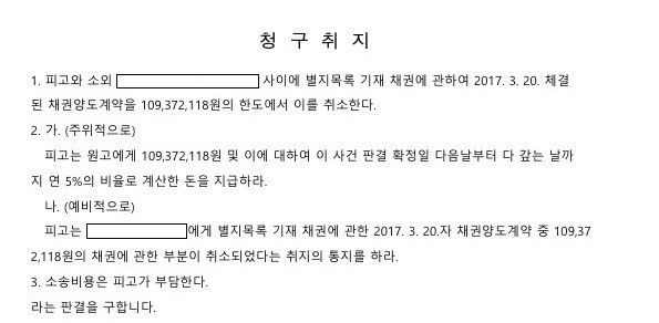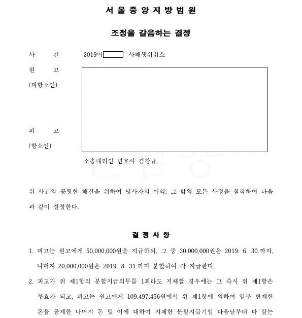 상대방이 사해행위취소를 주장하면서 가액배상으로 1억 900만 여원을 지급하라는 소송을 제기하였는데, 5,000만원으로 감액하는 내용으로 조정