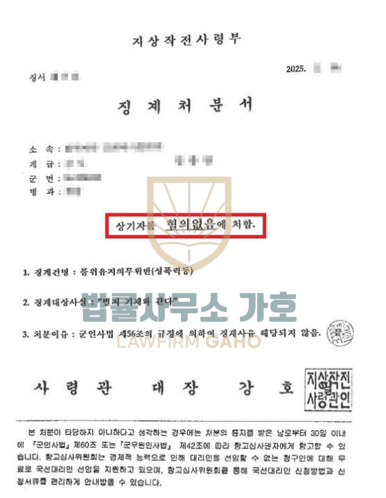의뢰인은 직업군인으로 같은 부대에서 함께 근무하는 여군의 엉덩이를 만졌다고 신고되어 품위유지의무위반(성폭력등) 혐의로 징계조사와 징계위원회를 앞두고 있었습니다.