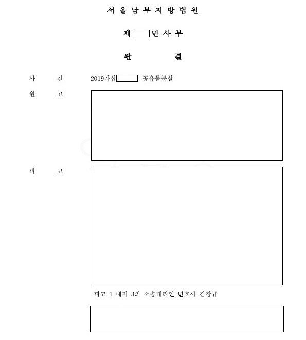 공유로 등기되어 있는 아파트형 공장의 일부 소유자가 나머지 소유자를 상대로 공유물분할청구소송을 제기하였으나, 구분소유적 공유관계라는 사실을 입증하여 기각판결을 받음