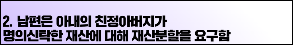 2. 남편은 아내의 친정아버지가 명의신탁한 재산에 대해 재산분할을 요구함