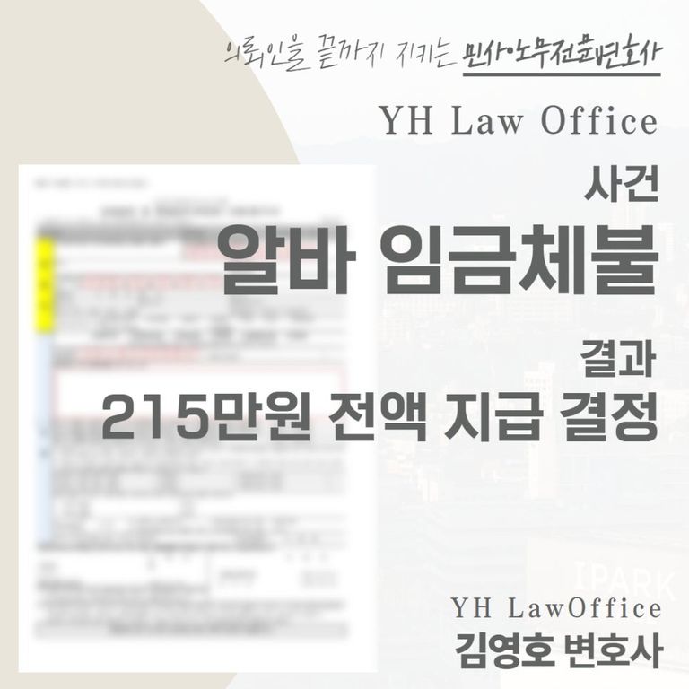 알바 임금체불 → 결과 : ‘215만원’ 전액 지급
