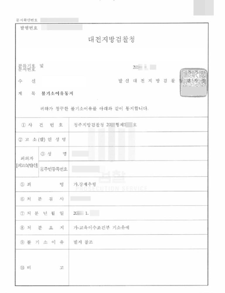 이러한 변호인의 조력으로 의뢰인은 교육이수조건부 기소유예 처분을 받게 되었습니다.