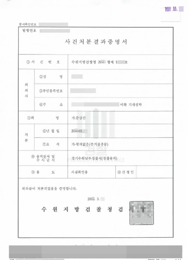 이러한 변호인의 조력으로 의뢰인은 혐의없음(증거불충분)으로 불기소의 처분을 받을 수 있었습니다.