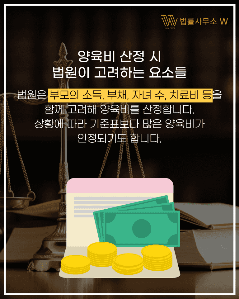 반대로 비양육자의 채무가 과다하면 기준표보다 낮아질 수도 있습니다.