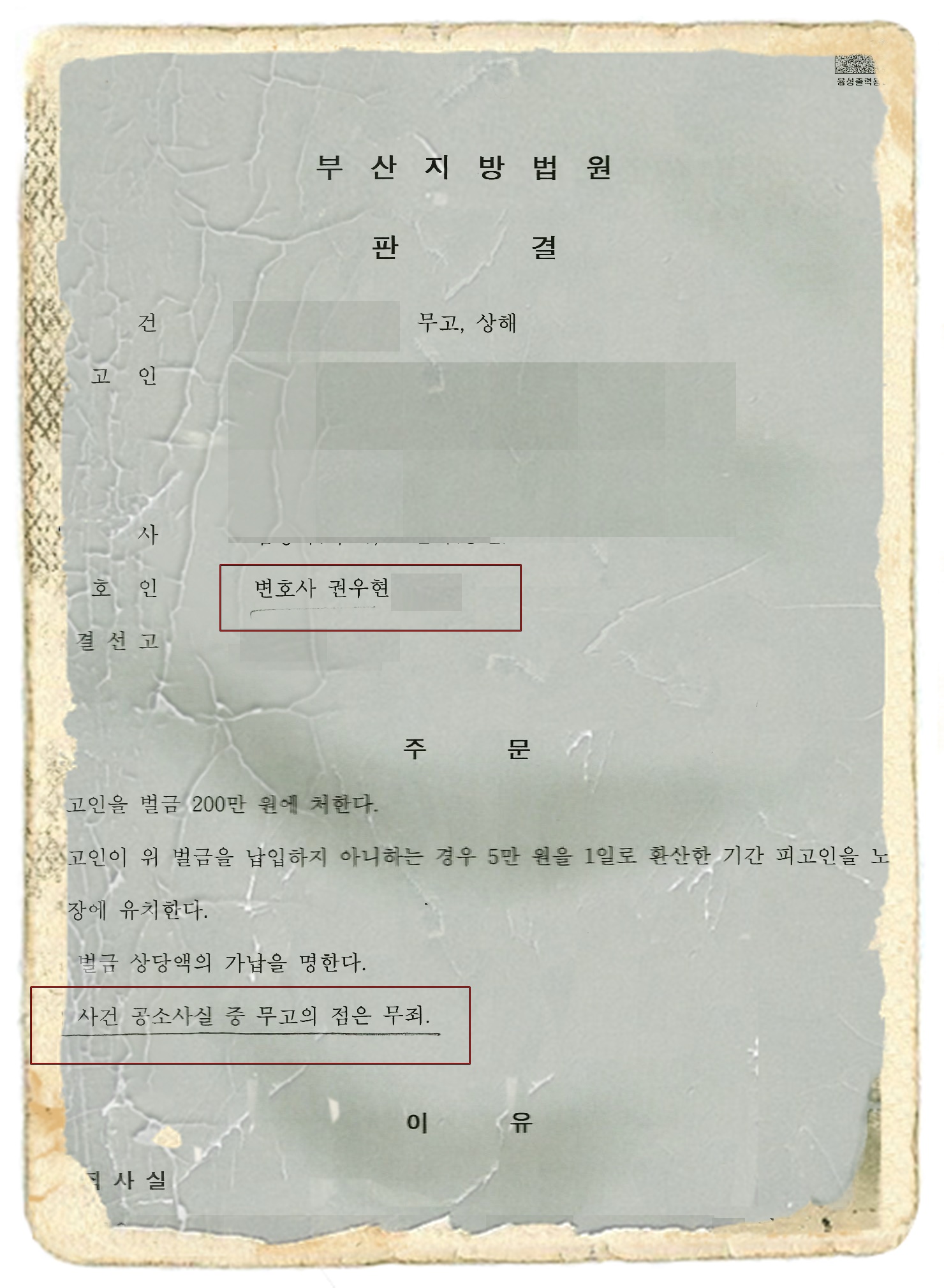아래 사건은 애초 검찰이 피고인이 발목을 다친 것은 상대방이 밟아서 다친 것이 아니라 피고인 스스로 삔 것이다라는 의사의 의학적 판단에 피고인이 허위 고소를 하였다는 확신을 가지고, 상대방이 밟아 다쳤다는 내용으로 고소한 피고인에 대하여 무고로 공소를 제기한 사안이지만, 변호인의 변론에 힘입어 결국 판사님의 법률적 판단은 검사의 견해와 달리 의사의 판단에도 불구하고 무죄를 선고한 사례라는 점에서 큰 의미가 있다고 할 것입니다.
