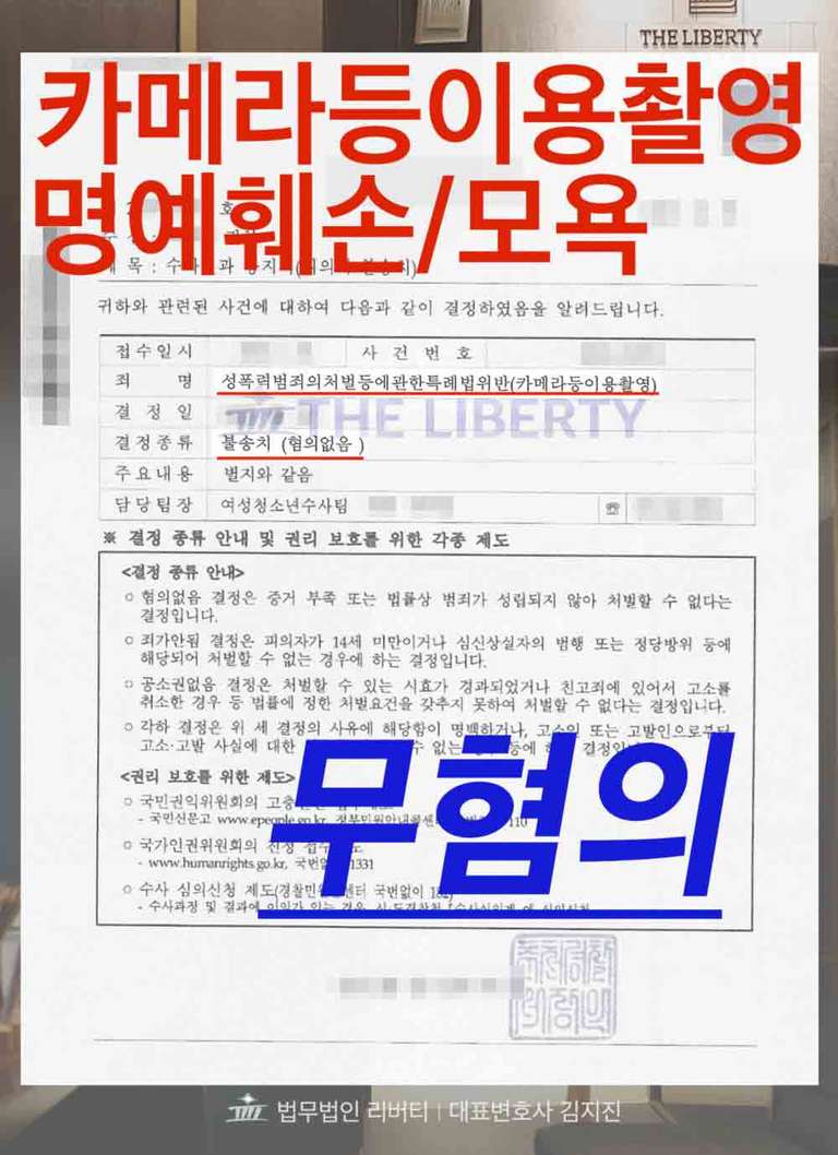 최근 성폭력처벌법 중 '카메라등이용촬영' 혐의는 무혐의를 받기조차 어렵습니다. 치밀한 사실 분석과 전략 대응으로 몰래카메라 불법촬영•명예훼손 혐의에서 무혐의 처분을 받아낸 사례를 소개합니다.