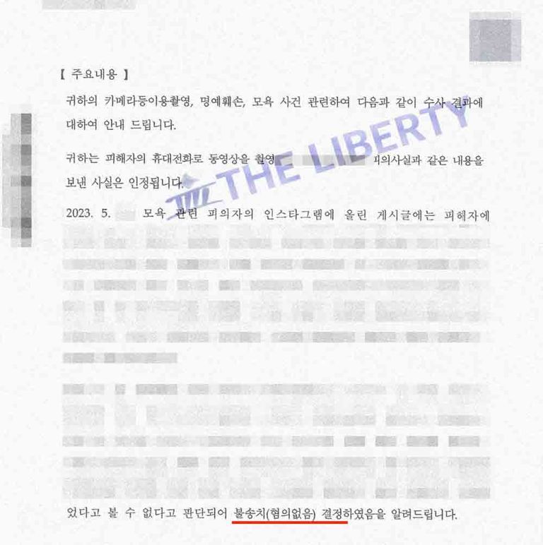 결국 경찰은 저의 주장을 인정하며 “피해자가 특정되었다고 볼 수 없고, 사회적 평가를 침해할 수 있는 구체적인 사실이 없다”며 모욕 혐의 또한 불인정하였습니다.