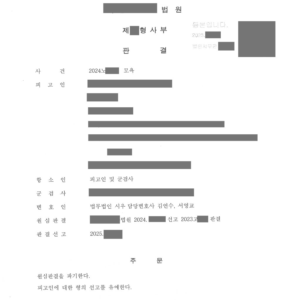 유죄 판단을 뒤집은 김연수 변호사의 성공사례입니다.