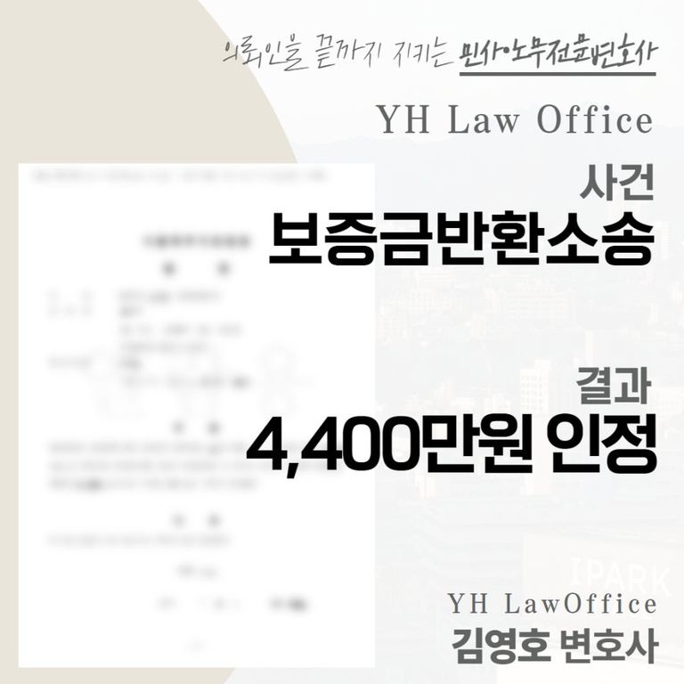 다행히도 의뢰인께서는 ‘4,400만원’의 보증금을 돌려받을 수 있게 되었습니다.