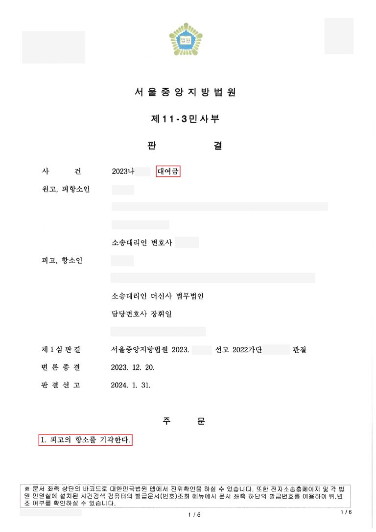 사건 결과: 대여금 전액 반환 인용