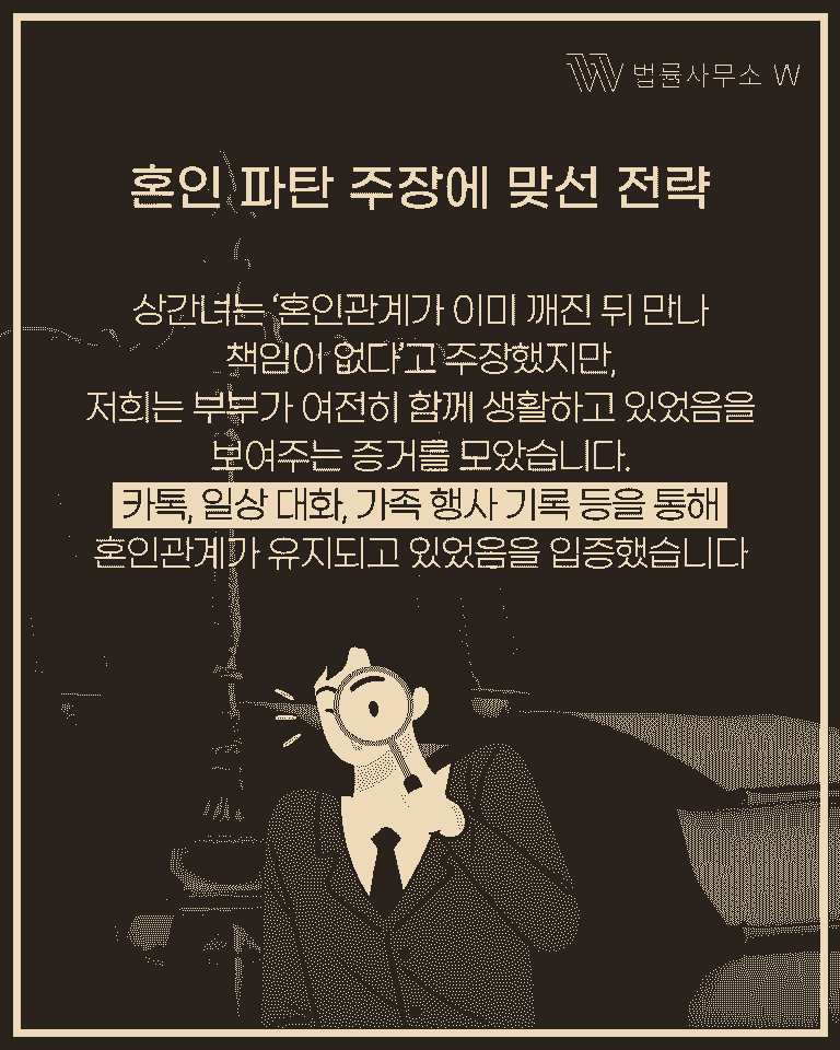 이번 사례처럼 상대방이 “혼인 파탄 이후 만나 책임이 없다”는 주장을 펼치더라도,