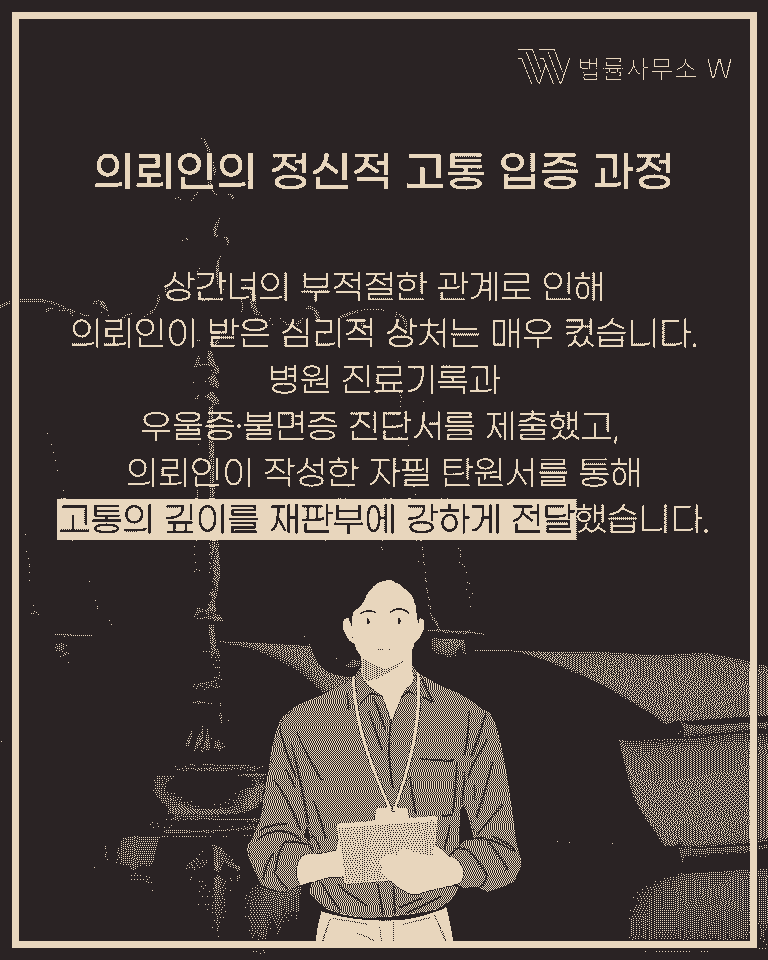 의뢰인은 남편의 외도로 극심한 고통을 겪고 있었습니다.
