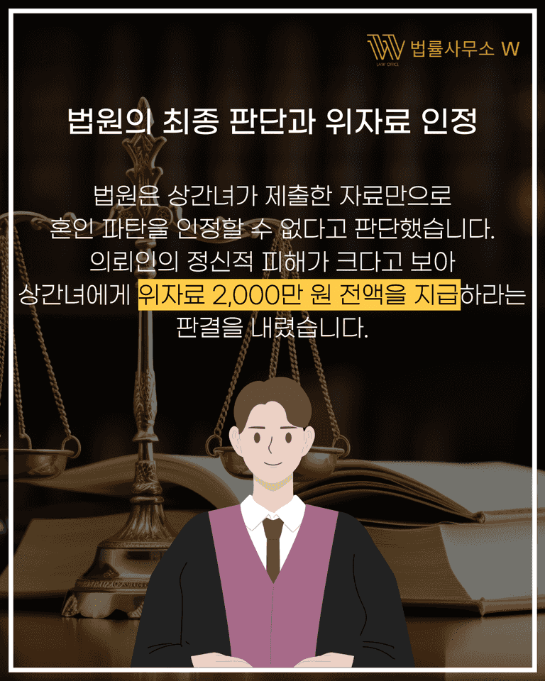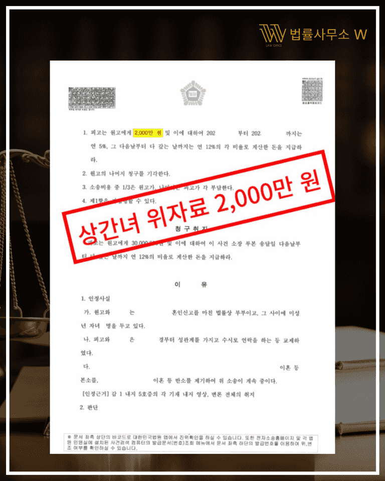 상간녀 주장 기각, 위자료 2천만 원 전액 인정