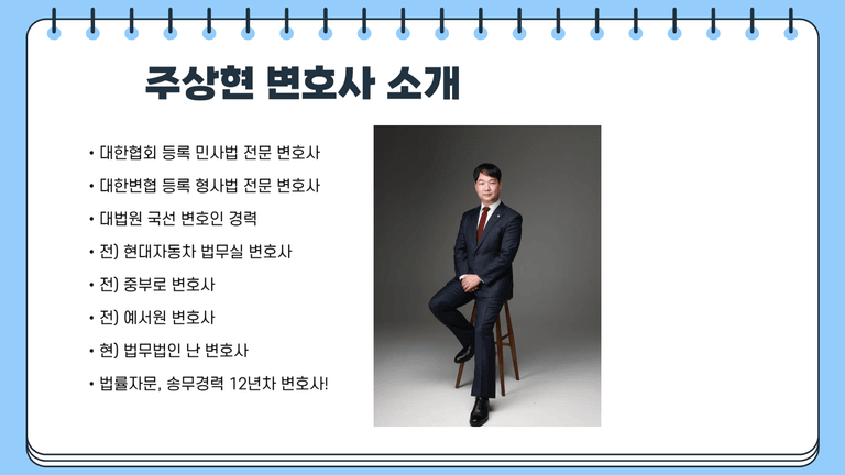 주상현 변호사는 대한변협 등록 민사법/형사법 전문 변호사입니다.