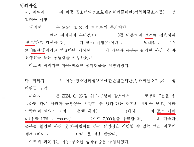 공기업 회사원 A씨는 2024. 6. 25.경 트위터에서 '섹트'를 검색하여 알게 된 '08년생' B양의 계정에서 B양이 업로드한 가슴과 음부 사진, 자위 동영상을 시청하였습니다.