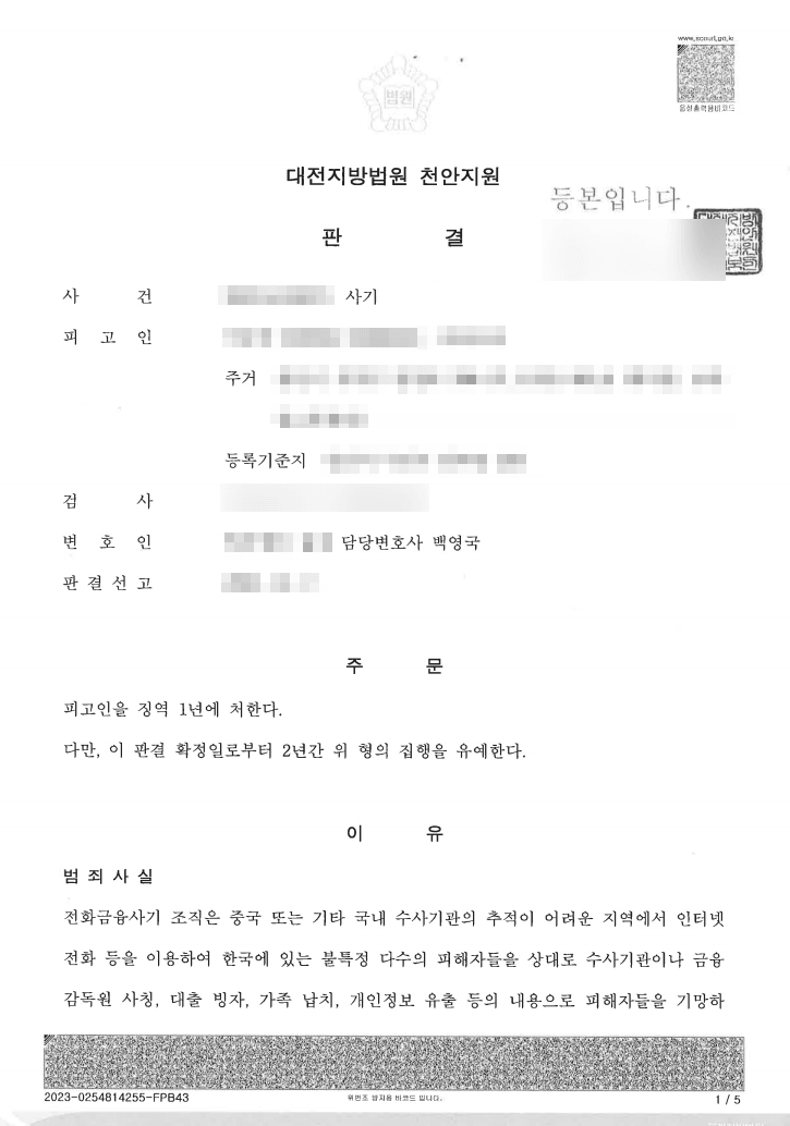 안타깝게도 이 보이스피싱은 너무나도 사회적으로 폐해가 커서 2024. 8.부터는 '전기통신금융사기피해방지및피해환급에관한특별법'까지 시행되어 1년 이상의 징역 내지 범죄수익금의 3배에서 5배에 해당하는 벌금 등으로 엄벌하고 있어요.