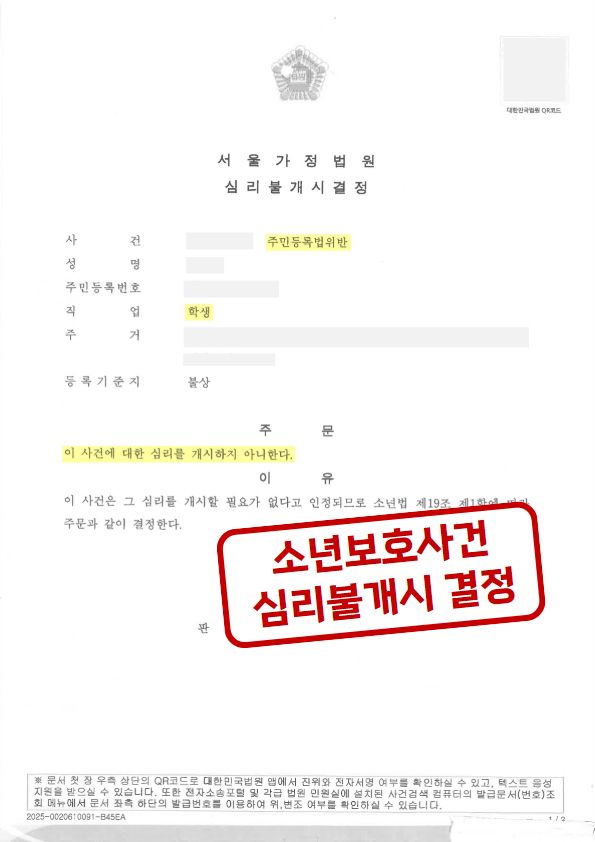 ![[💥소년범죄] 주민등록법 위반 고등학생, 심리불개시 결정!](/_next/image?url=https%3A%2F%2Fd2ai3ajp99ywjy.cloudfront.net%2Fuploads%2Ftitleimage%2Foriginal%2F5c46d5fe6500855b3a059540-original.jpg&w=3840&q=75)