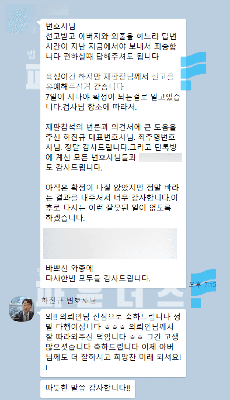 더욱이 1심 재판 진행 결과 통매음 혐의에서 집행유예 판결이 나왔고 이에 의뢰인은 어린 나이라서 전과가 생기는 것이 두려워 항소심 절차에서 파운더스 변호인의 조력을 요청하였습니다.