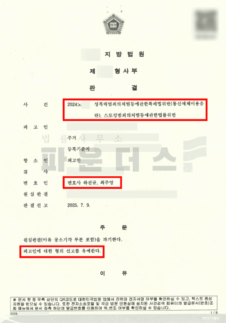 그 결과 의뢰인은 피해자에 문자메시지로 성적 발언을 한 통매음 사건 항소심 진행에 있어 전과 기록이 남지 않는 선고유예 판결로 마무리 지을 수 있었습니다.