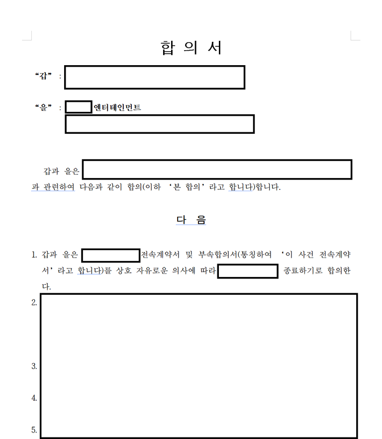 [출처: 태연법률사무소, 전속계약해지 합의]