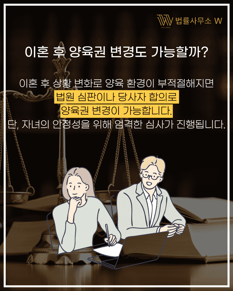 자녀의 복리를 위해 필요하다고 판단되면 이혼 후에도 법원 심판을 통해 양육권을 변경할 수 있습니다.