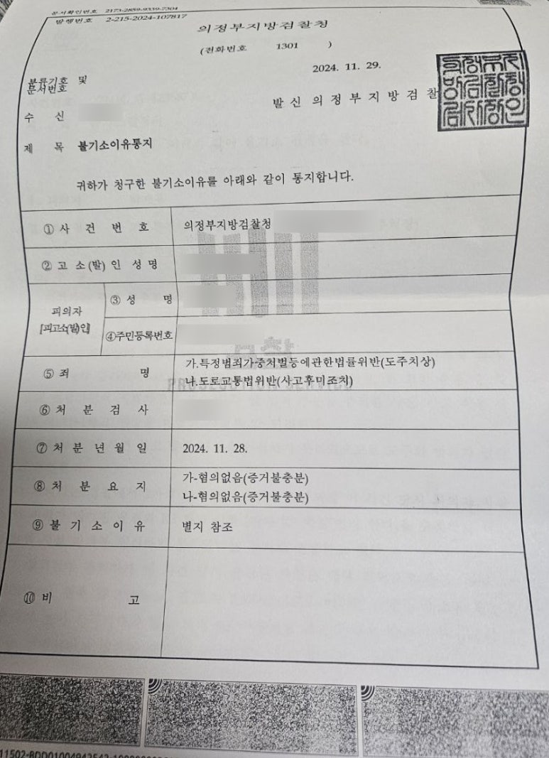 경찰이 불송치 결정을 하였는데