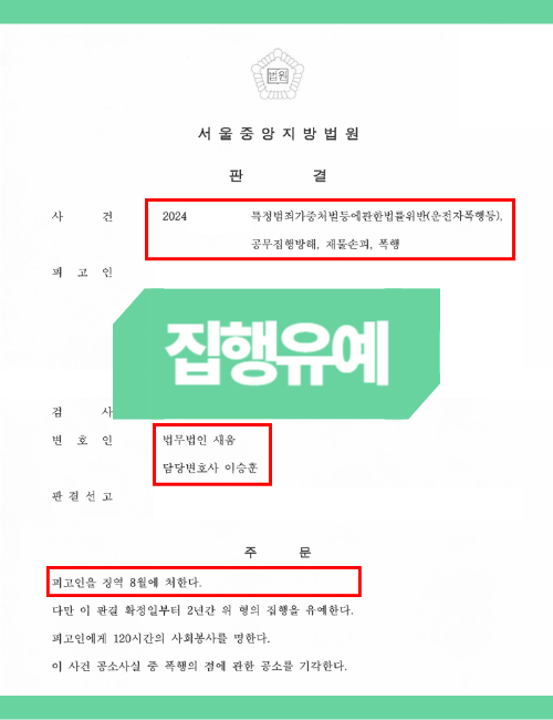 이 경우 A씨의 경제적 여건 상 합의금 외에 경찰측에 대한 피해보상 공탁을 하지 못했음에도 불구하고 음주 폭행 및 공무집행방해 혐의 등에 대해서 징역 8월과 집행유예 2년, 120시간의 사회봉사 처벌을 받는 것으로 마무리 할 수 있었습니다. 자칫 음주 폭행과 공무집행방해로 인해서 강도 높은 처벌을 받을 수 있는 사안이었으나 적극적인 피해자들과의 소통과 빠른 대응 덕분에 긍정적인 결과를 이끌어낼 수 있었던 사안이었습니다.