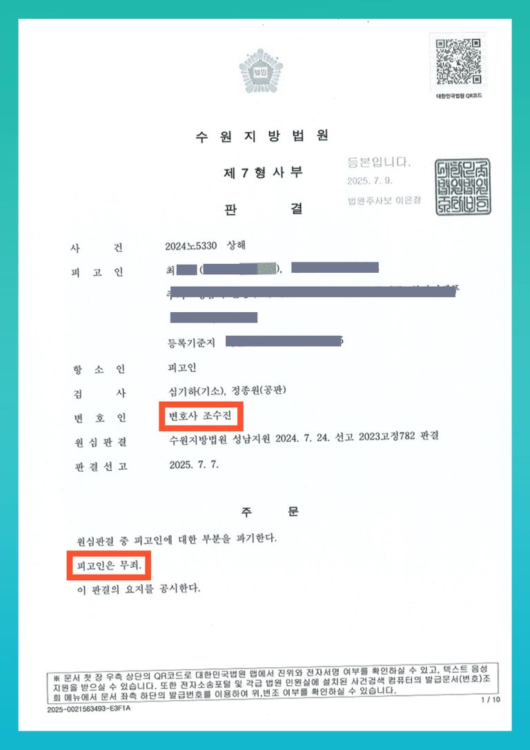 오늘은 1심 유죄 판결을 뒤집고 항소심에서 기어이 무죄를 받아낸 실제 사건을 통해, 형사전문변호사의 치밀한 증인 전략이 얼마나 중요한지 이야기 드리고자 합니다.