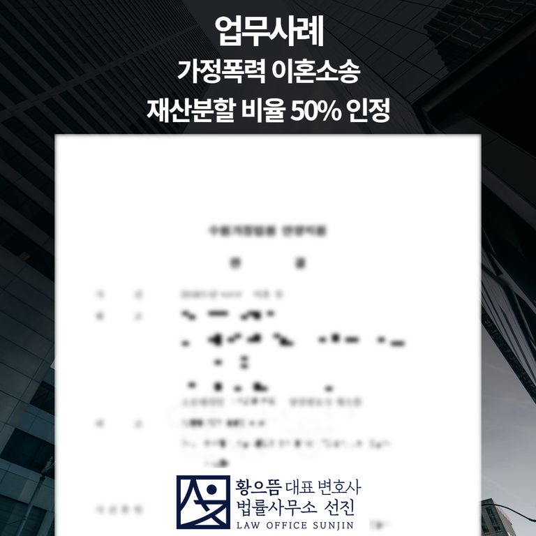 가정폭력 이혼소송 → 결과 : ‘재산분할 50%’ 인정